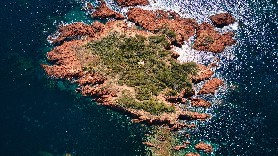 Le massif du Cap Roux est typique de l'Estérel avec ses terres et roches rouges qui surplombent la mer. Il culmine à 453m d'altitude. Une vue impren...