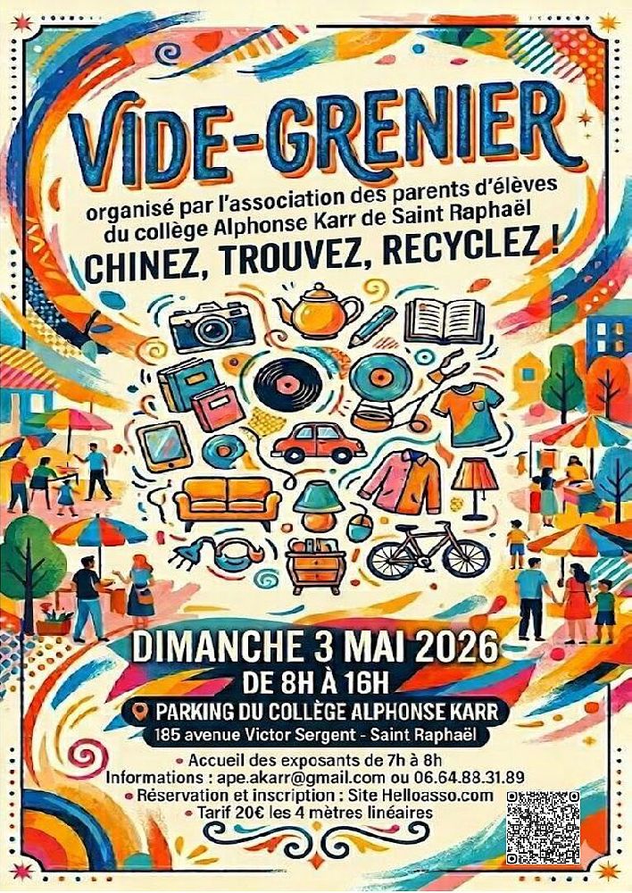 Vide-greniers organisé par l'Association des Parents d'Elèves du Collège A. Karr au profit des projets éducatifs mis en place pour les collégiens.