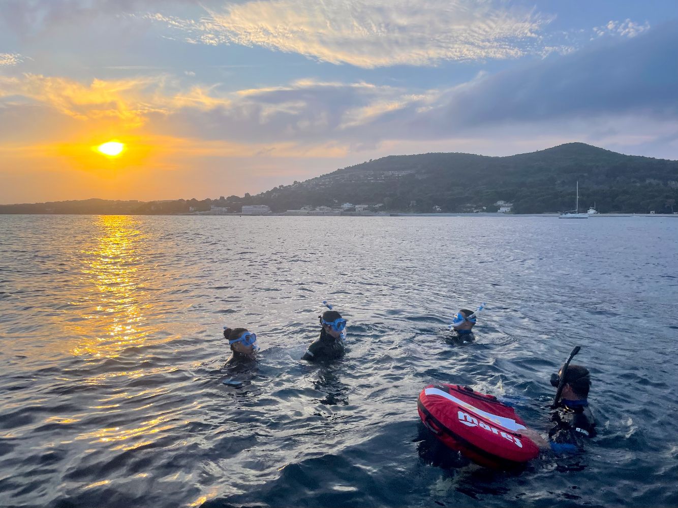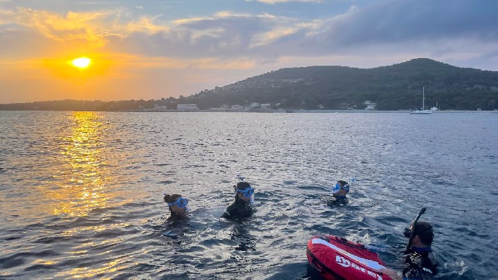 - Sunset snorkeling (3h00 – les vendredis): Vivez une expérience unique en mer au moment où la lumière devient la plus belle. Cette sortie vous emmène dans les calanques de l’Estérel en fin de journée, lorsque la mer est plus calme et les couleurs plus intenses. Un moment idéal pour se détendre, nager et profiter d’une ambiance plus intime. Un apéritif est proposé à bord pour prolonger l’expérience.