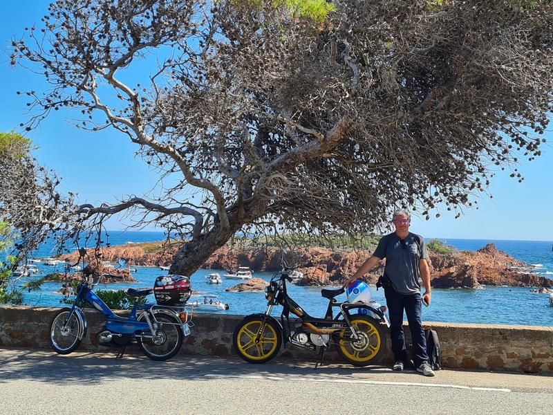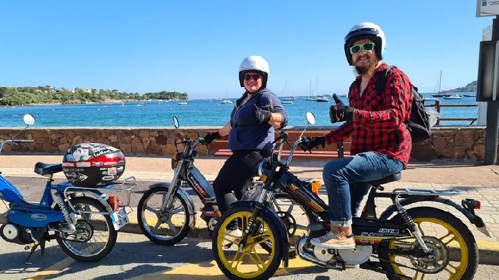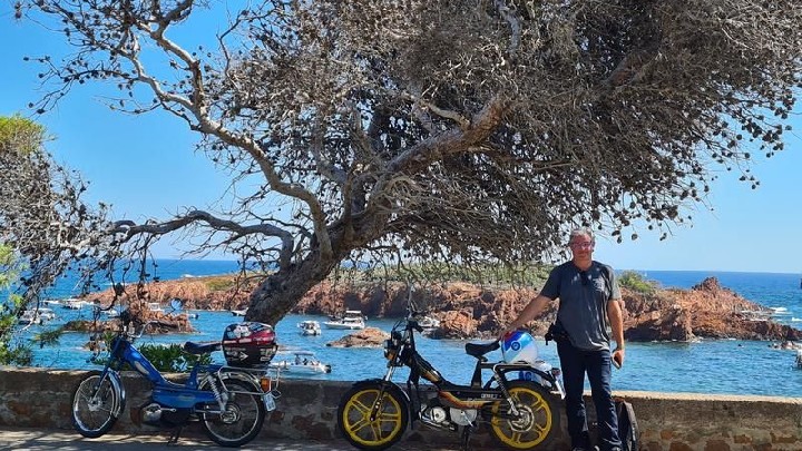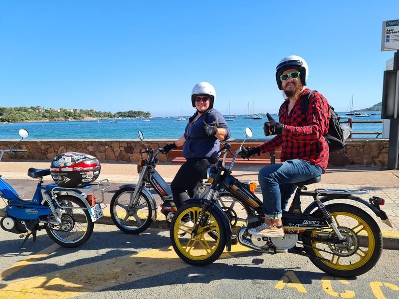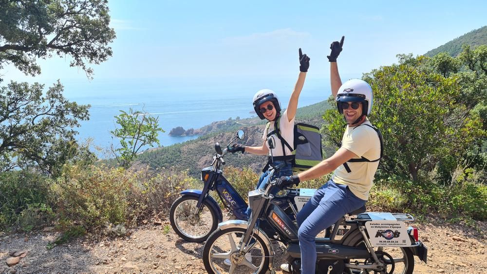Balades accompagnées en véritables mobylettes vintage le long de la Corniche d'Or et au cœur du Massif de l'Estérel
