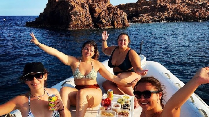 Offrez-vous une parenthèse privilégiée au départ du port de Santa Lucia à Saint-Raphaël, lors d’une excursion privatisée à la demi-journée ou à la journée. À bord d’un confortable bateau de 8,5 mètres, tout est pensé pour votre bien-être. Caroline, votre skipper et guide de la mer, vous propose une expérience sur mesure dans une ambiance conviviale et intimiste, entre navigation, détente et exploration aquatique.