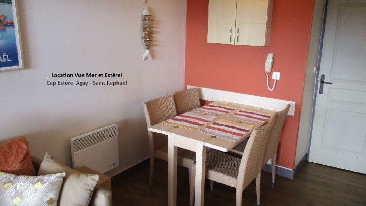 Cap Estérel : Appartamento con una camera da letto e terrazza coperta (10m2), vista mare e Cap Dramont. Include: parcheggio, accesso alla piscina, wifi, pulizia. Massimo 4 persone. Disponibile tutto l'anno.