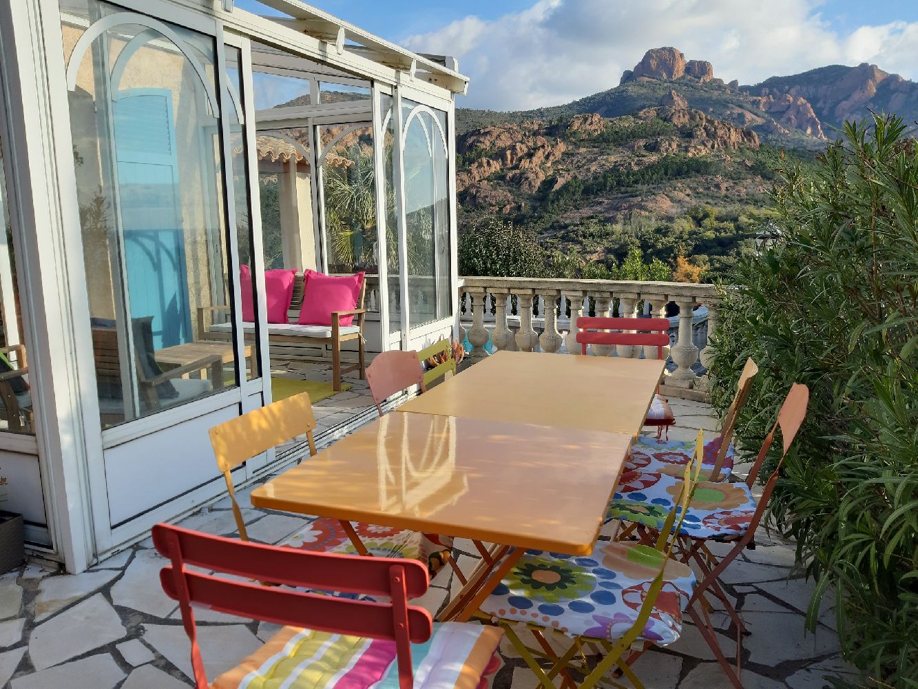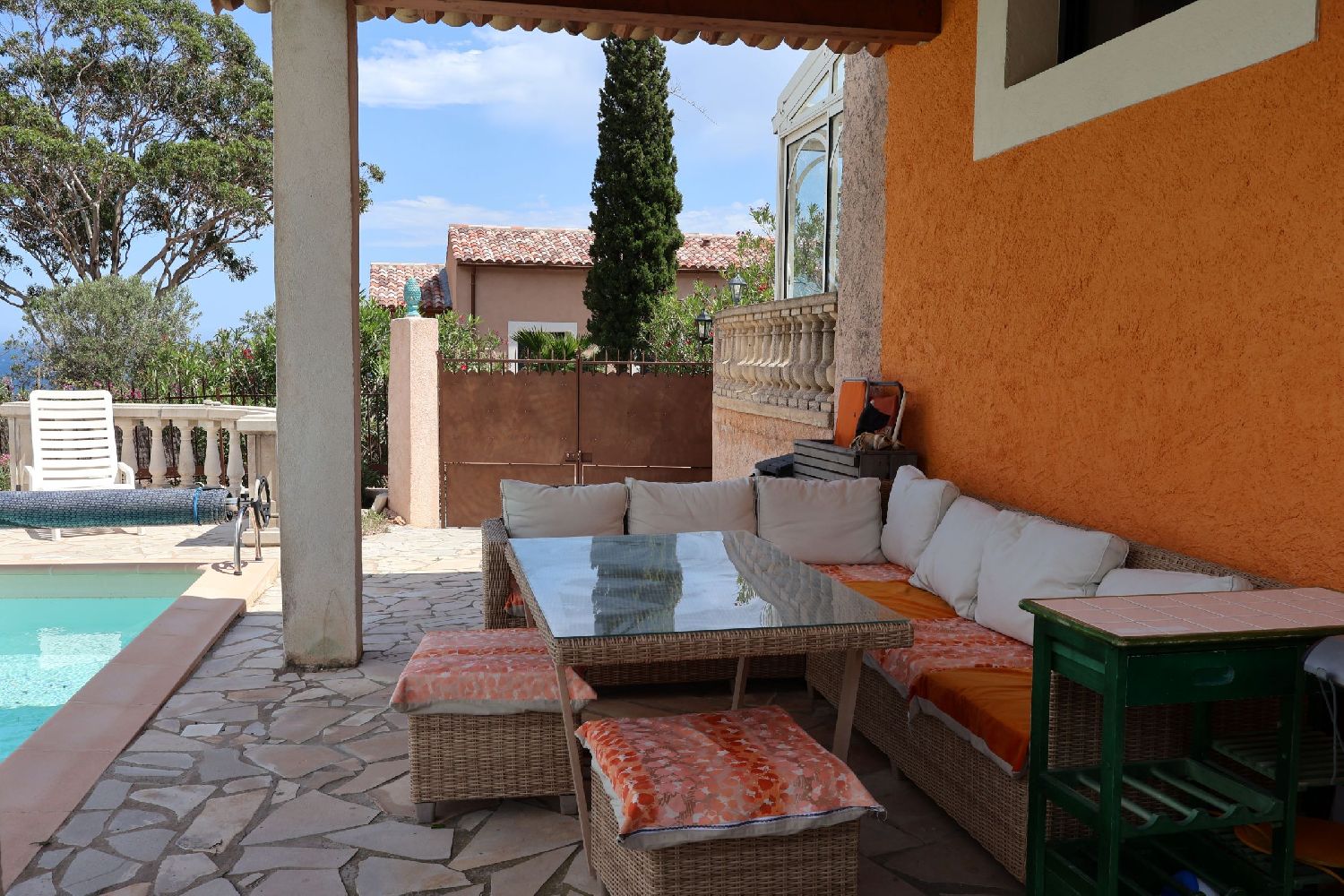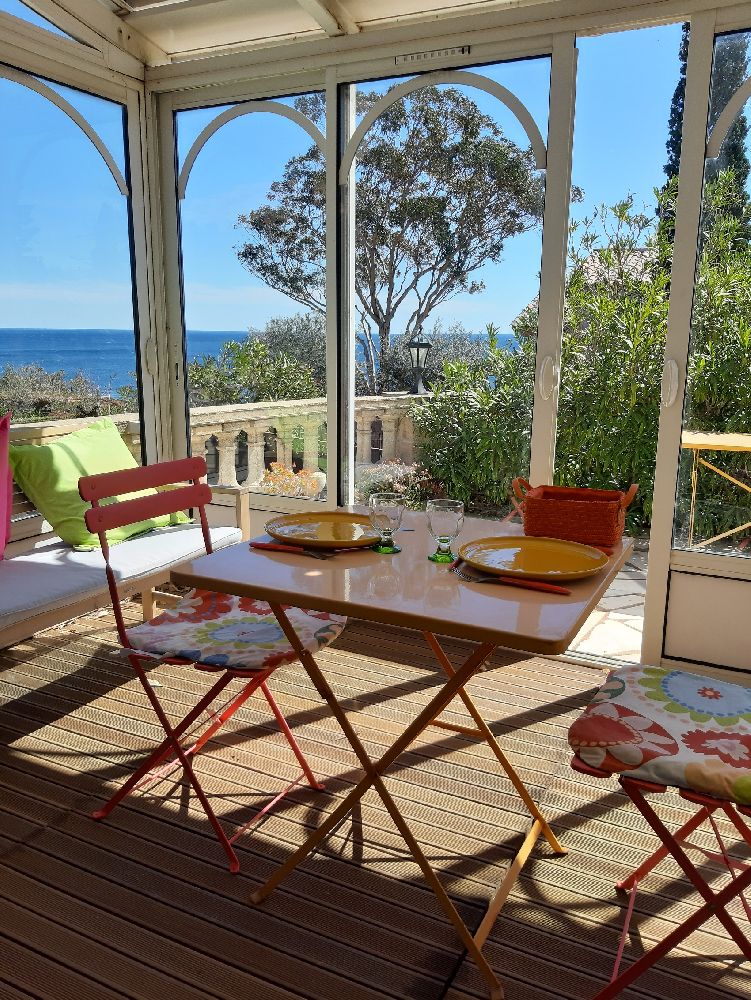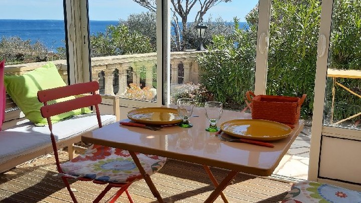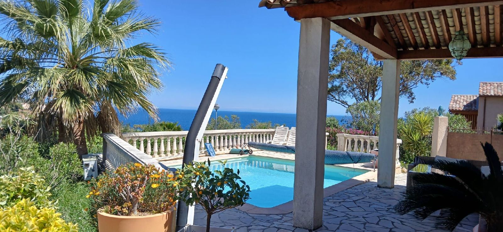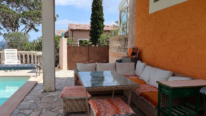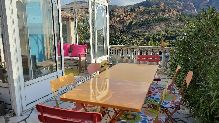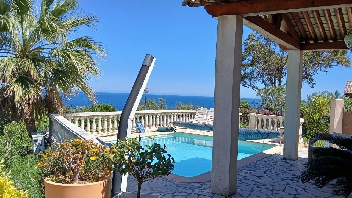 Villa indipendente con piscina. Posizione eccezionale di fronte al mare e al Massiccio dell'Estérel, piccolo giardino, 3 terrazze, arredamento di lusso, due bagni, 2 WC.