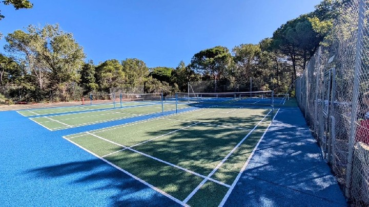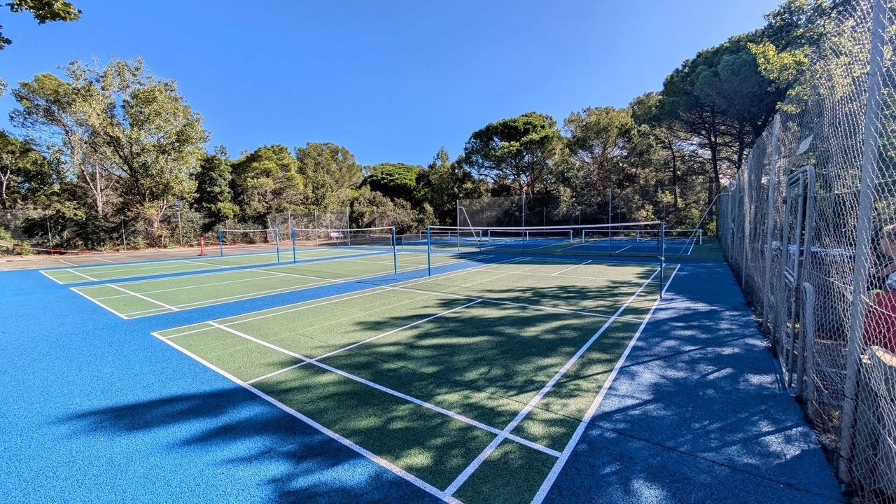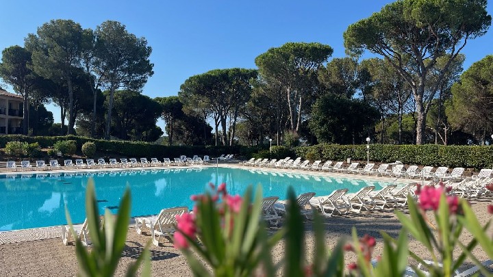 L'alloggio è dotato di aria condizionata e Wi-Fi. 2 camere da letto con letti matrimoniali e una zona notte con 4 letti singoli, ampio soggiorno con cucina completamente attrezzata, 2 bagni, grande terrazza privata fiorita e non affacciata (bbq, sedie a sdraio), piscina di 400 m2 e piscina per bambini, campi da tennis, campo da basket, campo da mini golf.
