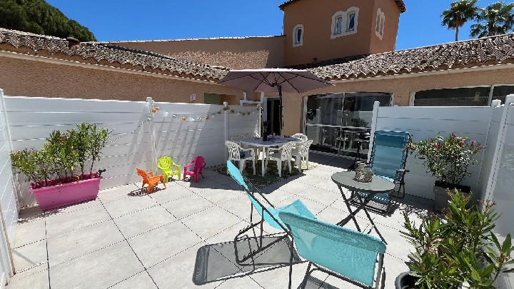 Abbiamo un incantevole cottage di 64 metri quadrati in affitto (fino a 8 posti letto). Ideale per vacanze con una famiglia numerosa o con amici. Si trova a Saint-Raphaël nel Var, nel cuore di un campo da golf, in un residence sicuro.